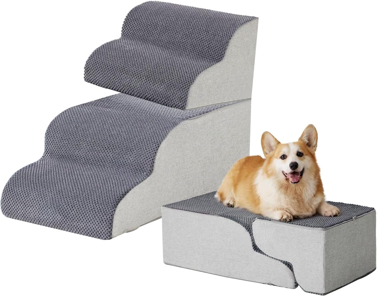 - Easy to Clean: Keeping these pet stairs for dogs fresh and tidy is a breeze. Simply remove the foam core and machine wash the outer cover separately in cold water on a delicate cycle. Please note, the foam core should not be machine washed or dried to ensure long-lasting use and comfort for your pets.