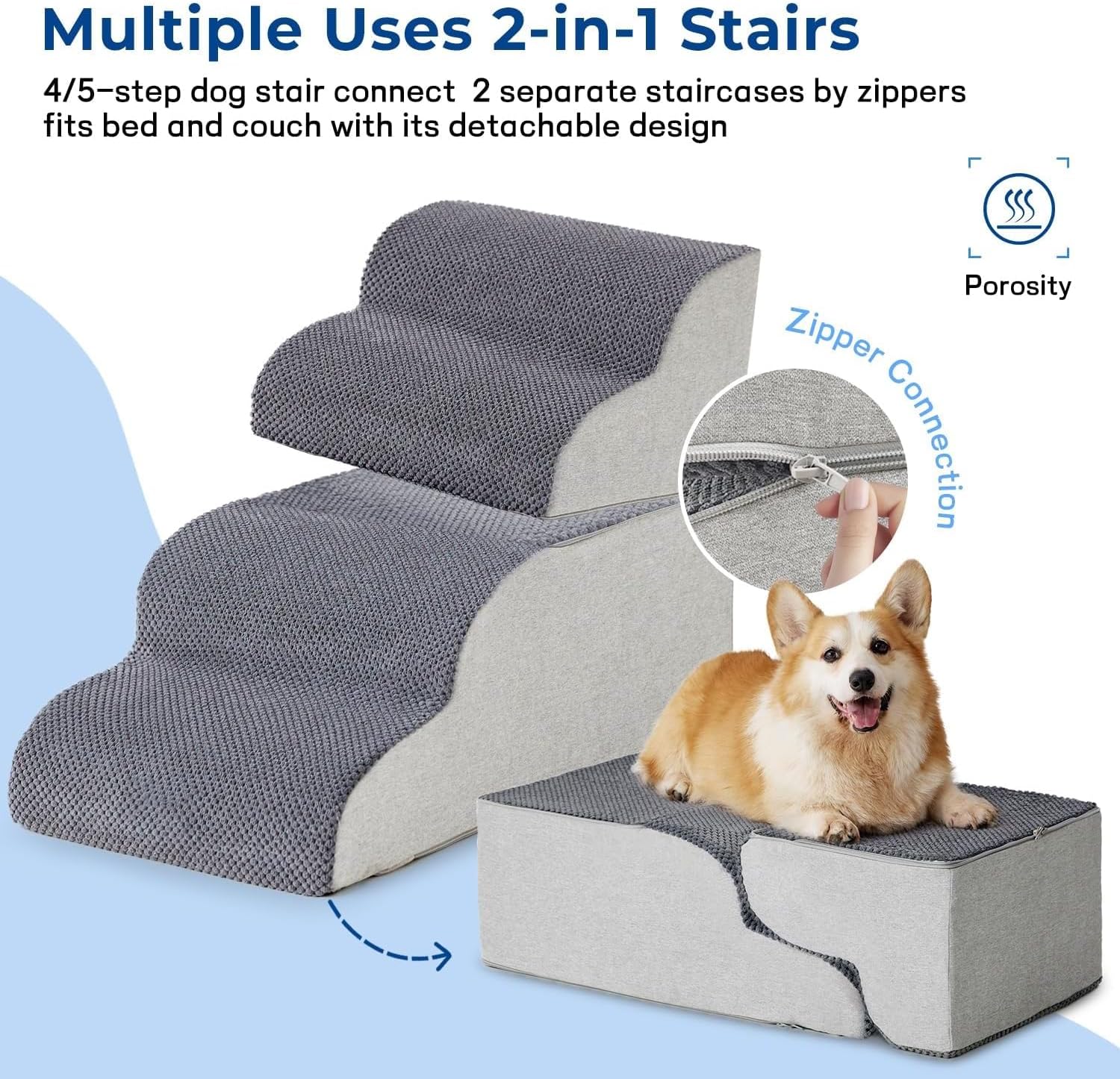 - 【Multifunctional Dog Stairs】: Designed to lean against beds, sofas, or other furniture, our dog stairs provide a comfortable solution for pets to climb up and down easily. Ideal for small, elderly, or injured dogs, this portable and foldable pet stairs ensure your furry friends have access to their favorite spots without strain. 4 step dog stair is 50 cm height and suitable for sofas or beds up to 56 cm. the pet ramp folds effortlessly into a soft bed when your pet needs to rest.